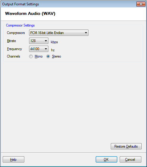 To configure WAV Conversion Settings, click Formats >> WAV >> Configure.