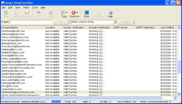 Smart Email Verifier has a very user friendly and intuitive user interface that makes E-mail verification simple, efficient and very informative.