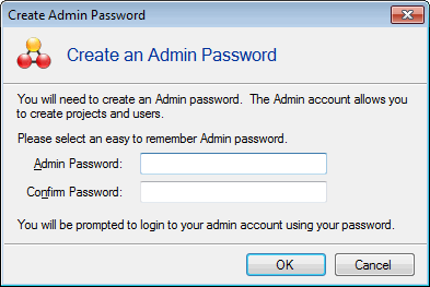 You will need to select an Admin password. The Admin account allows you to administer Team Task Manager. You will need to login as the Admin to create projects and users.