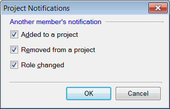 Check the Show project notifications option. In the Project Notifications dialog, you can select whether you want to be informed when you are added to and/or removed from a project as well as if your role in the project has changed.