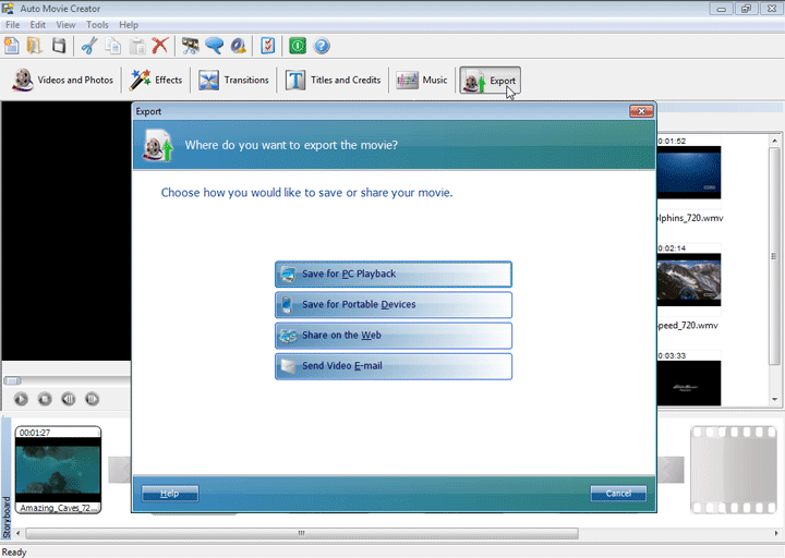 Vous pouvez créer votre film en version standard ou grand écran. Haute Définition (HD) formats sont totalement pris en charge. Il n'ya aucune limite sur ce que vous pouvez créer et pourtant vous n'avez pas besoin d'être un expert vidéo à utiliser l'assistant d'exportation simples.