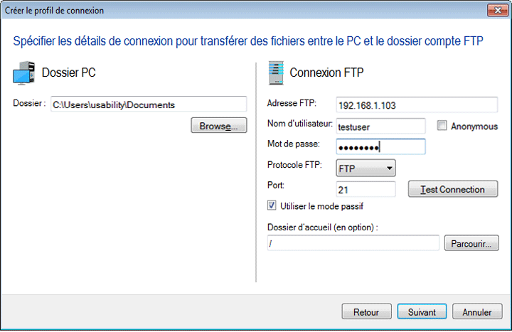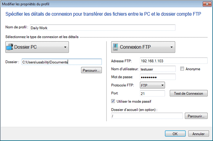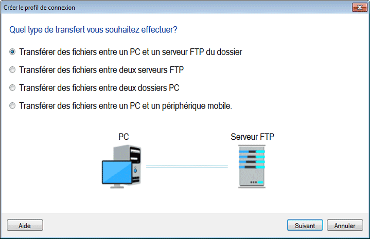 - Transférer des fichiers et des dossiers entre: PC vers FTP ou PC vers PC