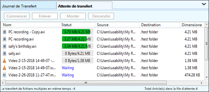 - Conserve un journal détaillé montrant toutes les actions de transfert