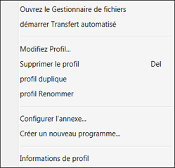 Vous pouvez effectuer des opérations rapides sur un profil, simplement en cliquant avec le bouton droit sur le profil et en sélectionnant l'une des options.