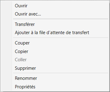 - Transfert: Pour transférer un fichier ou un dossier, sélectionnez-le et cliquez sur Transfert. Cela va transférer l'élément sélectionné dans le volet opposé.