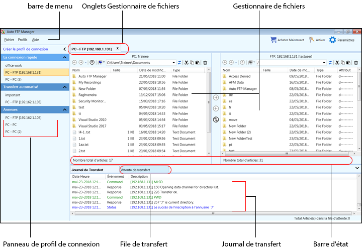 - Gardez une trace de temps de tous les transferts avec l'aide de Journal de transfert.