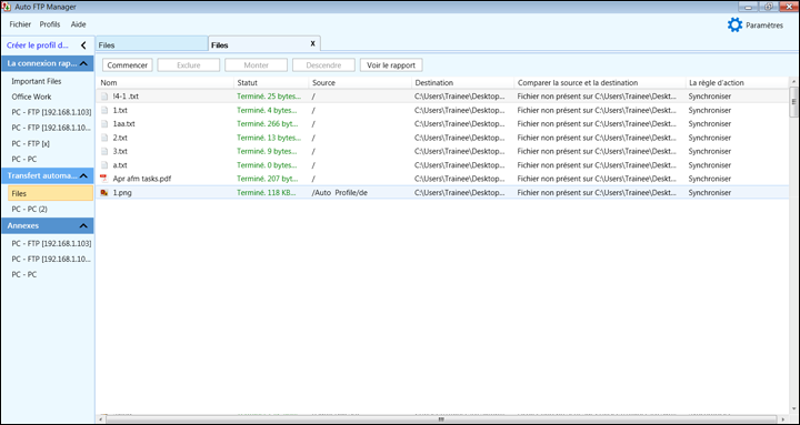 Le profil automatisé vous aide à automatiser le processus de transfert. Effectuer diverses opérations telles que la synchronisation, la suppression et le transfert de fichiers automatiquement.
