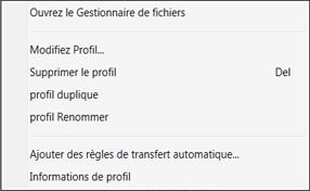 Vous pouvez effectuer des opérations rapides sur un profil, simplement en cliquant avec le bouton droit sur le profil et en sélectionnant l'une des options.