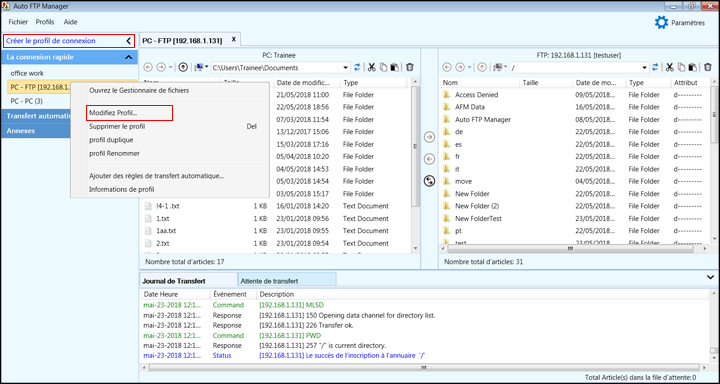 Cette section explique comment effectuer des opérations de base telles que l'ajout ou la modification de différents types de profils.