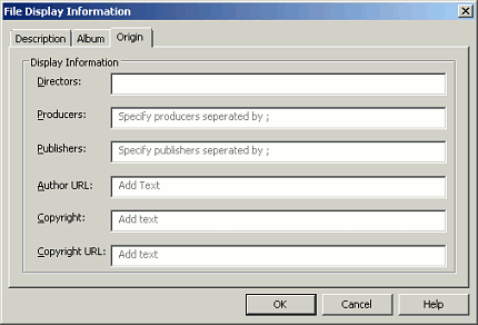 Sur l'onglet Album, vous pouvez entrer des informations sur les créateurs du film: le réalisateur et le nom du producteur (s), une URL pour plus d'informations, et les informations de copyright.