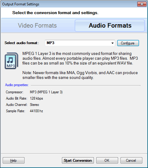 Le format choisi dépend de la façon dont vous prévoyez d'utiliser le fichier. Par exemple, si votre lecteur audio portable ne joue que les fichiers MP3, vous devez sélectionner le format MP3.