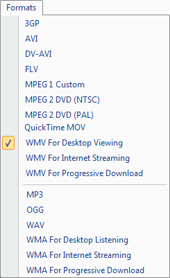 - Menu formats: Formats de sortie Select pour la conversion.