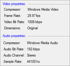 Par défaut, le Bitrate encodé est fixé à 1006 Kbps et la fréquence d'images à 29.97 Fps. La taille du fichier de sortie sera le même que le fichier original après la conversion.
