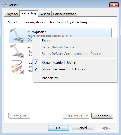 1.Faites un clic droit sur l'appareil d'enregistrement et sélectionnez Propriétés.