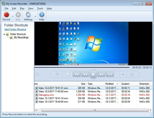 My Screen Recorder capture l'activité de votre PC dans des fichiers vidéo WMV ou AVI standard. Il enregistre tout ce que vous voyez sur l'écran de l'ordinateur, y compris le bureau entier, les fenêtres, les menus, les curseurs - même la vidéo avec son. Le programme crée des fichiers vidéo de haute qualité et de petite taille.Une caractéristique unique de My Screen Recorder est la capacité de capturer l'audio de vos haut-parleurs et du microphone en même temps.