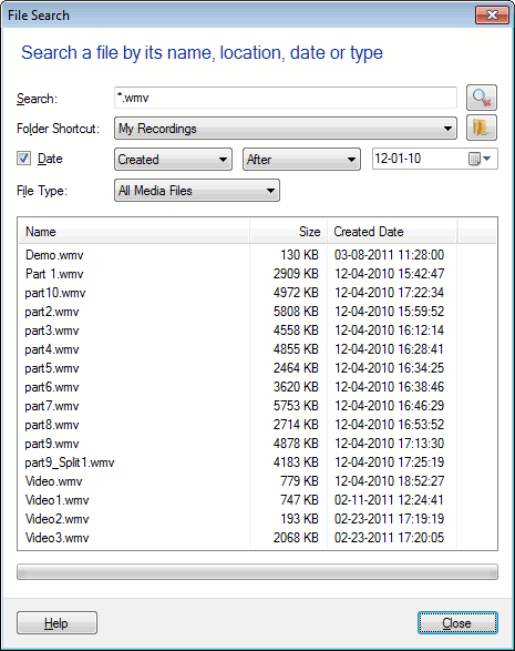 Sélectionnez le dossier dans lequel vous souhaitez rechercher votre fichier multimédia et cliquez sur Fichier >> Recherche de fichier. Vous pouvez entrer quelques caractères du nom de fichier pour commencer la recherche.