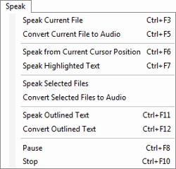 - Parler les fichiers sélectionnés: Sélectionnez les fichiers de la Liste de fichiers. Text Speaker commencera à parler le texte du premier document sélectionné jusqu'au dernier document sélectionné.