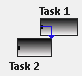 - A Terminer à-Start dépendance signifie que la tâche successeur (Tâche 2) ne peut pas commencer tant que la tâche prédécesseur (Groupe 1) se termine.