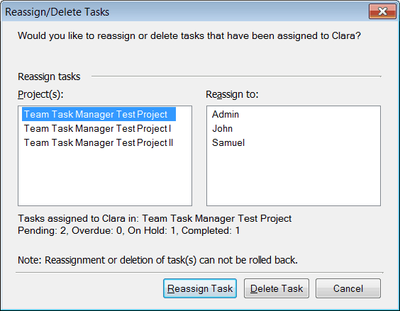 Remarque: Si vous réaffecter ou de supprimer les tâches, les changements ne peuvent pas être restaurées. Donc, vous devez faire attention avant de choisir l'une des options.