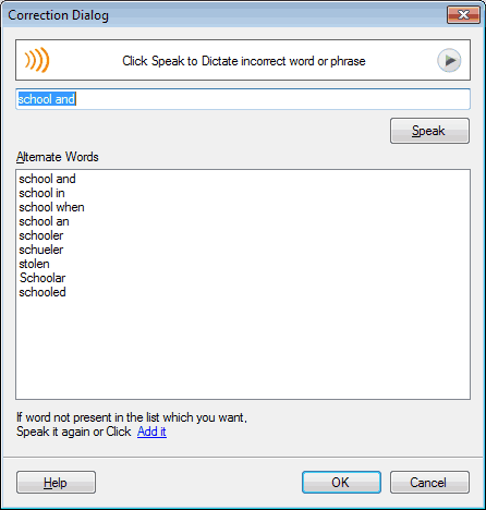 - Verwenden Sie Korrekturbefehle, um falsch erkannte Wörter zu korrigieren