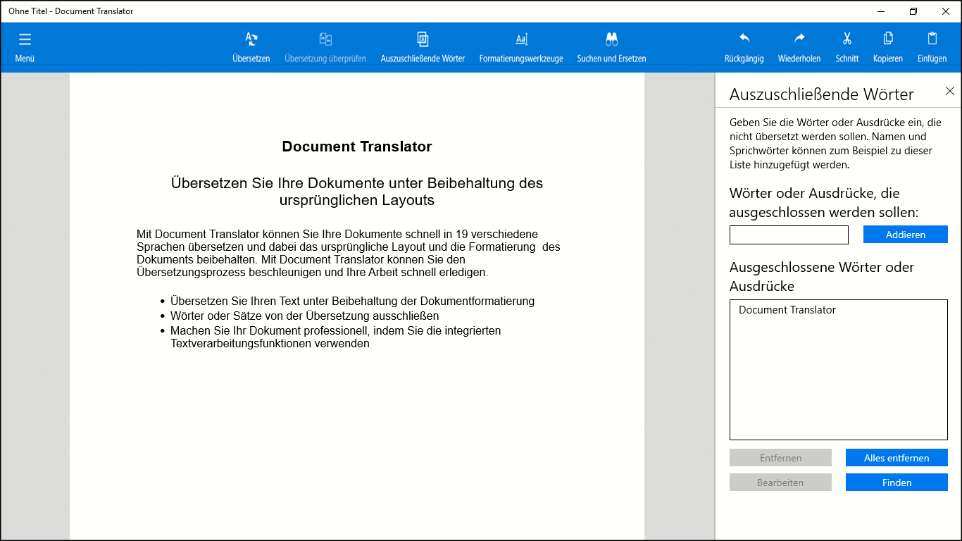 - Schließen Sie bestimmte Wörter oder Ausdrücke von der translated