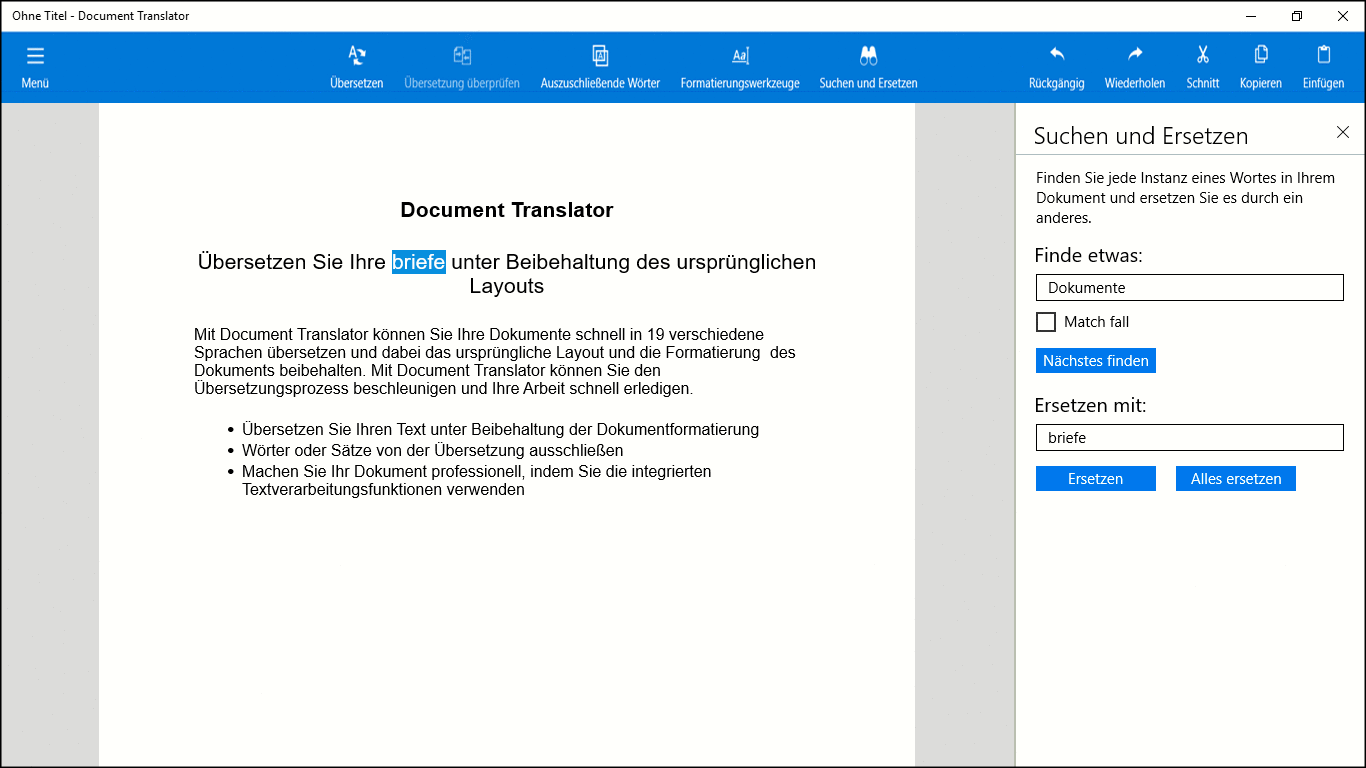 - Übersetzen Sie Ihre Dokumente zwischen mehreren Sprachen