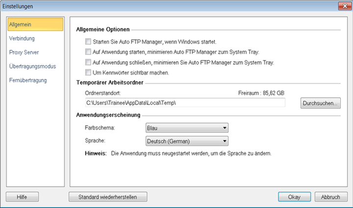 Sie können die Einstellungen der Anwendung an Ihre Anforderungen anpassen. Klicken Datei >>Einstellungen >> Allgemein.