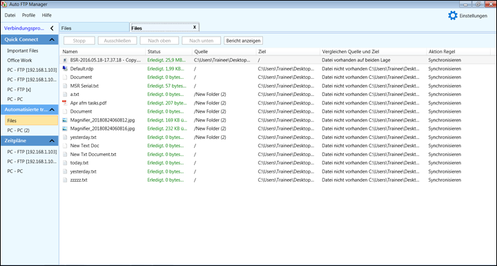 Automatisiertes Profil hilft Ihnen, den Übertragungsprozess zu automatisieren. Führen Sie verschiedene Operationen wie Synchronisation, Löschung und Übertragung von Dateien automatisch aus.