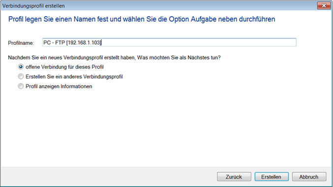 So erstellen oder bearbeiten Sie ein FTP-Verbindungsprofil