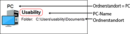 - PC: Es zeigt den Namen Ihres PC und den Speicherort des Ordners an.