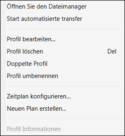 Sie können schnelle Vorgänge für ein Profil ausführen, indem Sie einfach mit der rechten Maustaste auf das Profil klicken und eine der Optionen auswählen.