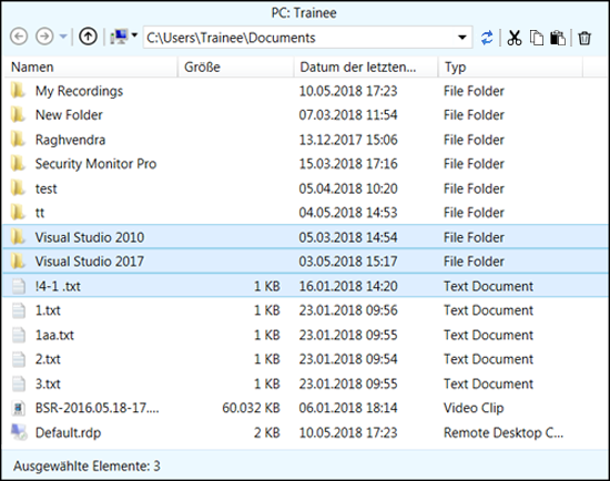 Wenn Sie Operationen mit einer Datei ausführen (kopieren, löschen oder anzeigen) möchten, müssen Sie die Datei oder den Ordner auswählen. Es gibt mehrere Methoden zum Auswählen von Dateien in der Listenansicht. Sie können Dateien ähnlich wie im Windows Explorer mit der Maus oder der Tastatur auswählen. Hier sind einige Möglichkeiten zur Auswahl von Elementen: