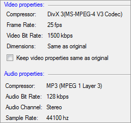 Kbps. Überprüfen Halten Video Properties gleichen wie original