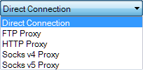 - Verbindungstyp: Der Verbindungstyp definiert, wie eine Verbindung zum FTP-Server hergestellt wird.Standardmäßig, Direkte Verbindung ist ausgewählt.Dies stellt eine direkte Verbindung zu einem FTP-Server ohne Verbindung über einen Proxy her.Folgende Verbindungstypen werden unterstützt: