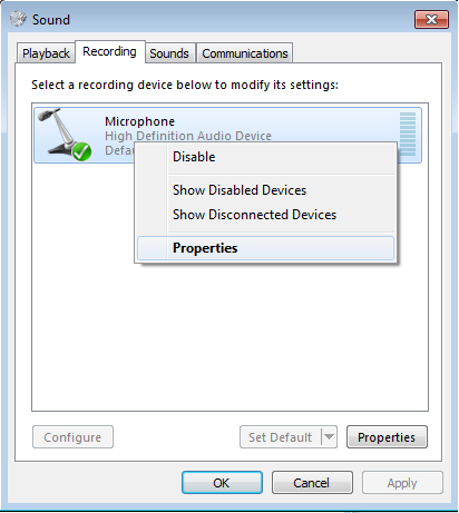 1. Klicken Sie mit der rechten Maustaste auf das Aufnahmegerät und wählen Sie Eigenschaften.
