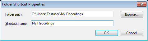 Alle Mediendateien sind in Ordnern organisiert. Wenn die Anwendung gestartet wird, wird ein Ordner mit dem Namen "Meine Aufzeichnungen" in "Eigene Dateien" erstellt. Wenn Sie eine Bildschirmaufnahme erstellen, wird sie standardmäßig im Ordner "Meine Aufnahmen" gespeichert. Sie können eine Ordnerverknüpfung zu jedem auf Ihrem PC vorhandenen Ordner erstellen.
