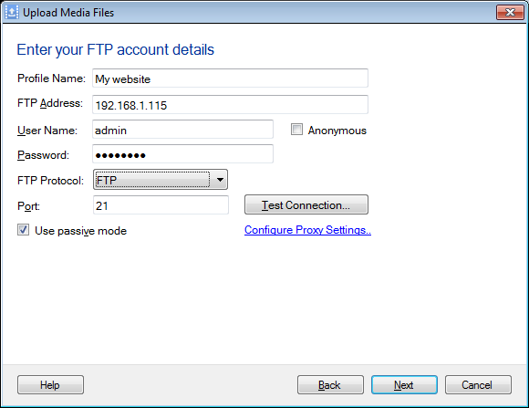 Bevor Sie die Mediendateien hinzufügen, müssen Sie die FTP-Kontodetails konfigurieren.