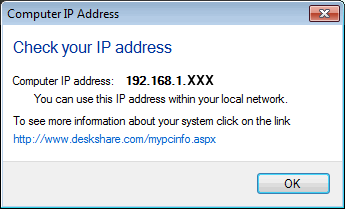 Wenn Ihr PC über einen Router (manchmal auch als Netzwerk-Firewall bezeichnet) auf das Internet zugreift, müssen Sie auf klicken www.deskshare.com/mypcinfo.aspx um die öffentliche (externe) IP-Adresse zu finden, die verwendet werden soll, wenn eine Verbindung zum Broadcast über das Internet hergestellt wird.
