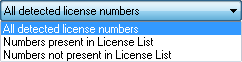Sie können ein Kennzeichenerkennungssystem einrichten, um Aktionen für alle oder nur bestimmte Kennzeichennummern auszulösen. Die Warnmeldungen werden bei der Erkennung von Lizenznummern gemäß der Auswahl aus der folgenden Dropdown-Liste generiert: