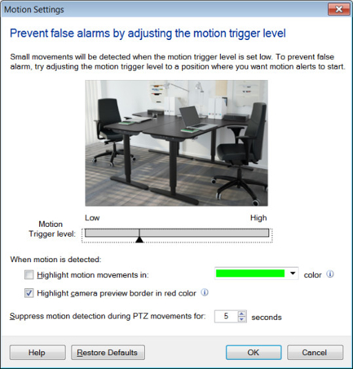 Es ist inhärent mit jeder Maschine basierte Betrieb, Bewegungserkennung ist nicht 100% genau.  Es kann manchmal eine echte Bewegung ignorieren oder eine Bewegung melden, wenn es keine gibt, die zu falschen Alarmen führt.  Wenn der Bewegungs-Trigger-Pegel abnimmt, erkennt WebCam Monitor die geringste Bewegung, und wenn der Bewegungs-Trigger-Pegel ansteigt, erkennt er nur eine ausgeprägte Bewegung und ignoriert leichte Bewegungen.  PLATZSie könnten denken, dass die Einstellung der Bewegungs-Trigger-Pegel niedrig ist, aber der niedrige Wert für den Bewegungs-Trigger-Pegel kann zu Fehlalarmen führen.