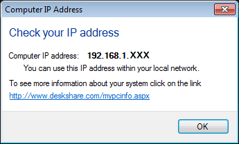 Wenn Ihr PC mit einem Router (manchmal Netzwerkfirewall genannt) auf das Internet zugreift, müssen Sie darauf klicken www.deskshare.com/mypcinfo.aspx
