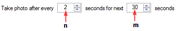 Die Werte geben an, wie oft ein neues Bild von der ausgewählten Kamera aufgenommen werden soll, wenn eine Bewegung auftritt.  Diese Einstellungen entscheiden über die Anzahl der Fotos, die bei der Auslösung eines Alarms vorgenommen werden sollen.