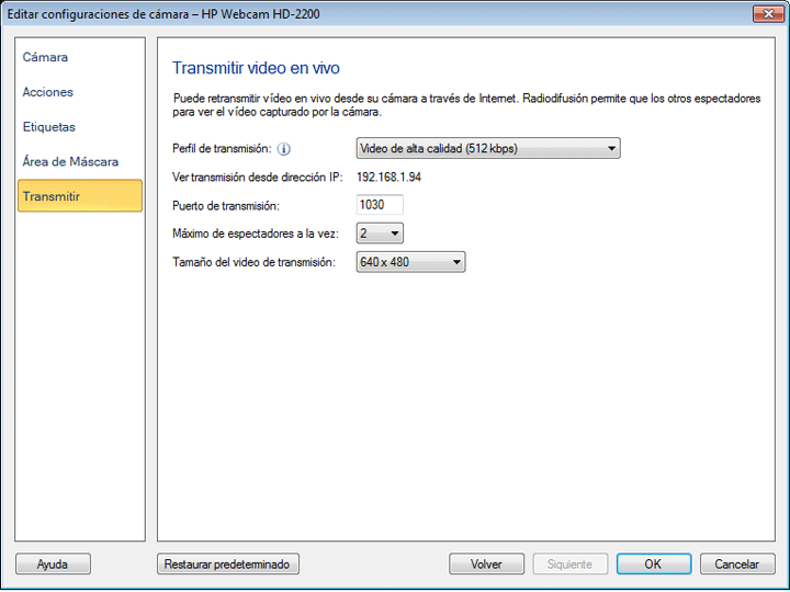 Rechtsklick auf die Kamera-Vorschau und wählen Sie Kamera bearbeiten >> Broadcast. Das Broadcast
