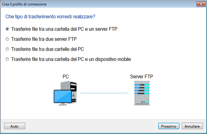 - Trasferisci file e cartelle tra: PC su FTP o PC su PC
