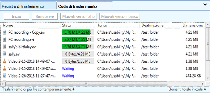 - Visualizzare lo stato di ciascun trasferimento di file singolarmente