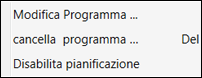 - Modifica pianificazione: Aggiorna le impostazioni del programma.