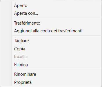 Il menu di scelta rapida Visualizza lista contiene opzioni di modifica dei file di base. Seleziona un file o una cartella, quindi fai clic con il tasto destro del mouse su di esso. Viene visualizzato il seguente menu di scelta rapida:
