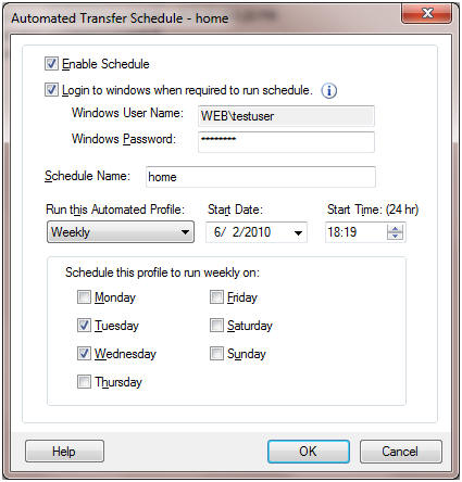 Specificare il nome utente e password di Windows correttamente per questa opzione per funzionare correttamente. Nota: Questa opzione, se attivata, di pianificazione dovrebbe essere eseguito in background anche se Auto FTP Manager User Interface è aperto.Ciò significa che l'interfaccia utente non è visibile a questo programma durante l'esecuzione.Quindi, sempre attivare l'opzione di trasferimento Log, per vedere il trasferimento di fatto. Argomenti correlati |