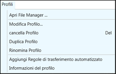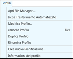 - Esci: interrompe tutte le azioni in esecuzione, mantiene le impostazioni del profilo per il successivo utilizzo e chiude l'applicazione.