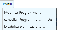 - Menu Profilo: Funzioni di gestione dei profili comuni.
